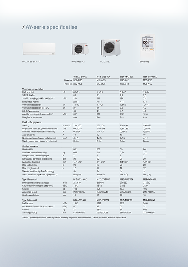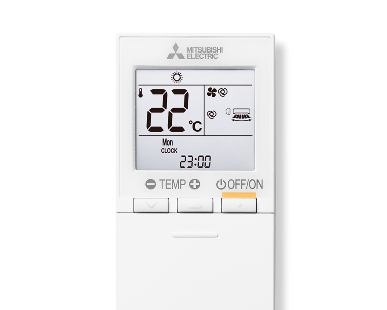 De afstandsbediening van de MSZ-AY uit de standaard-lijn is eenvoudig in gebruik en bedient verschillende functies, zoals een weektimer, temperatuurinstelling, vier programma’s per dag en nachtverlaging. Dit zorgt voor zeer individuele instellingen, een groot gebruikscomfort en laag energieverbruik.